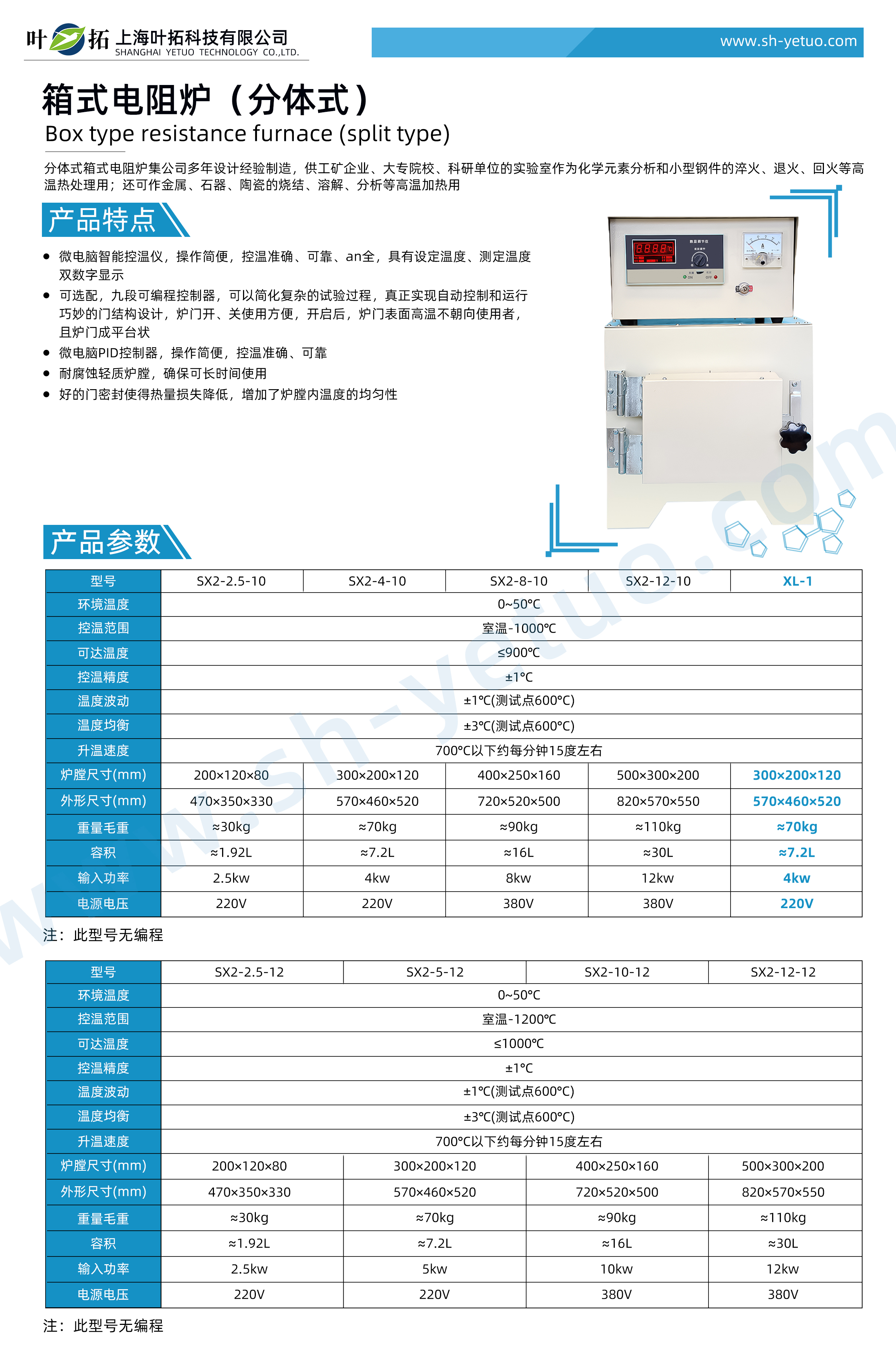 Characteristics of Ye Tuo XL-1 Split Box Resistance Furnace Products