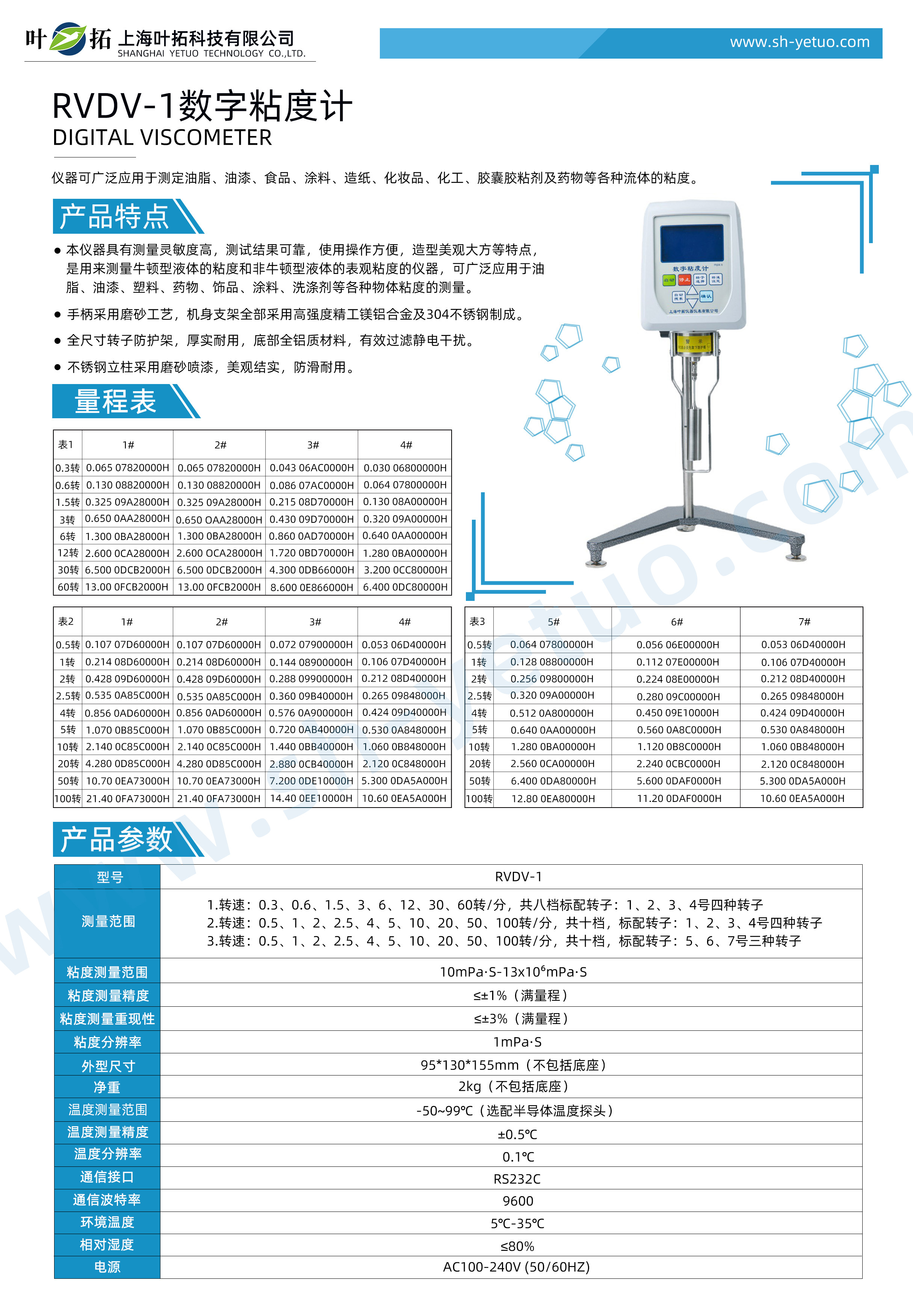Product features of Yetuo RVDV-1 digital rotary viscometer: