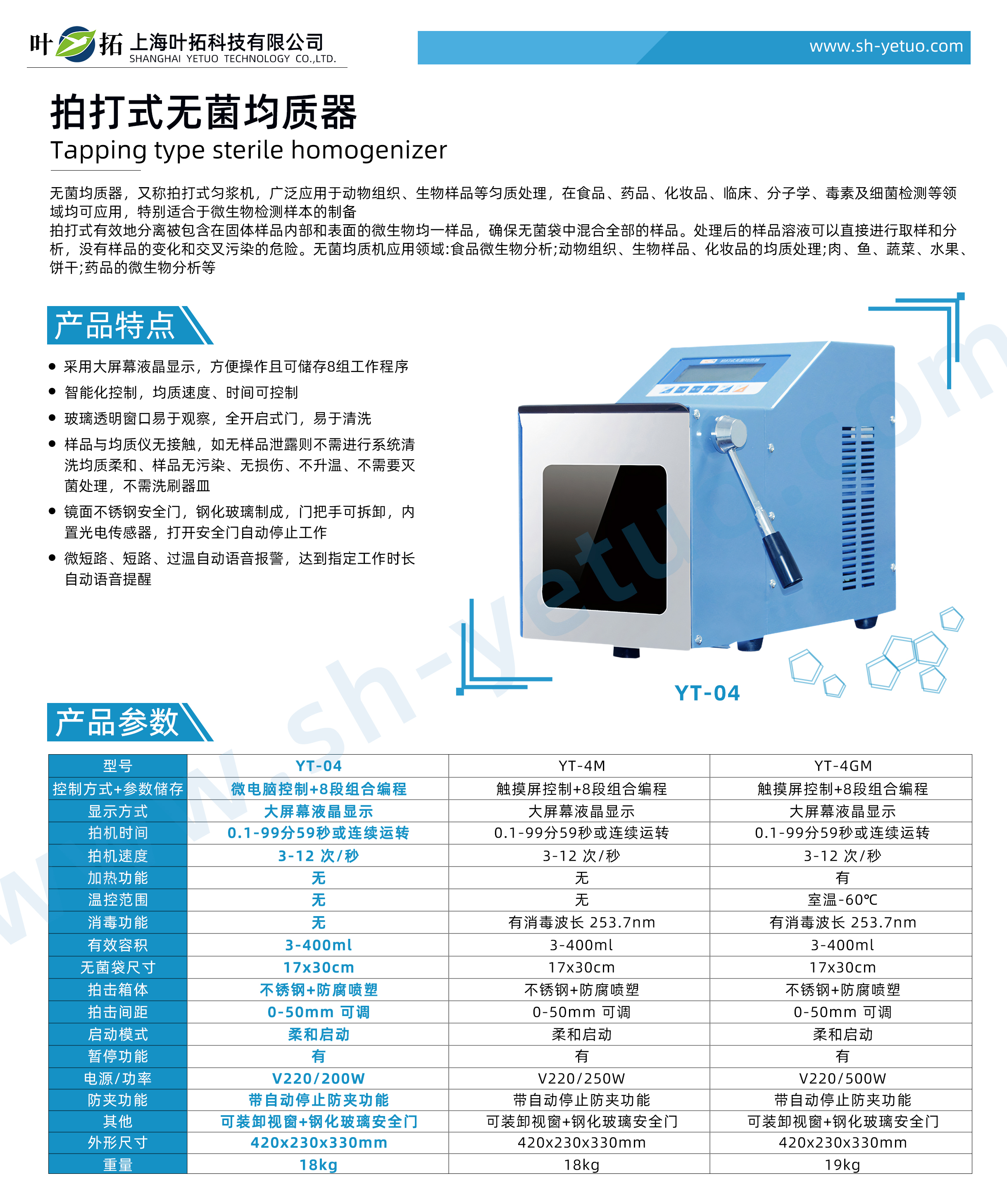 Product Features of Yetuo YT-04 Beating Aseptic Homogenizer