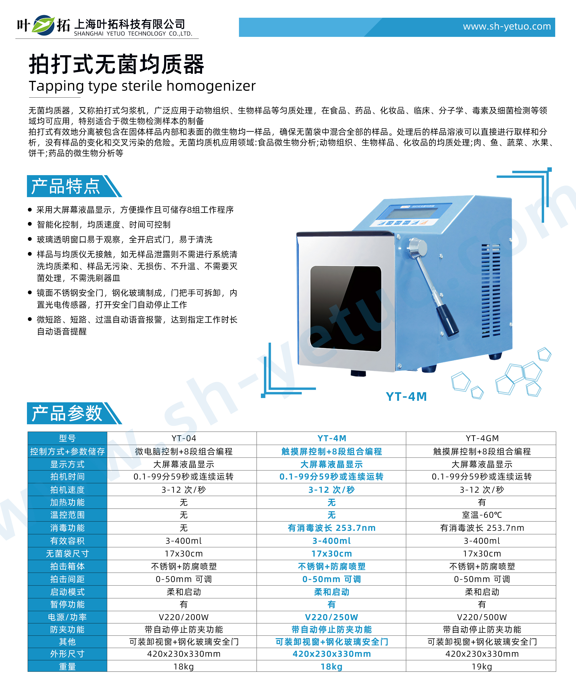 Product Features of Yetuo YT-4M Beating Aseptic Homogenizer