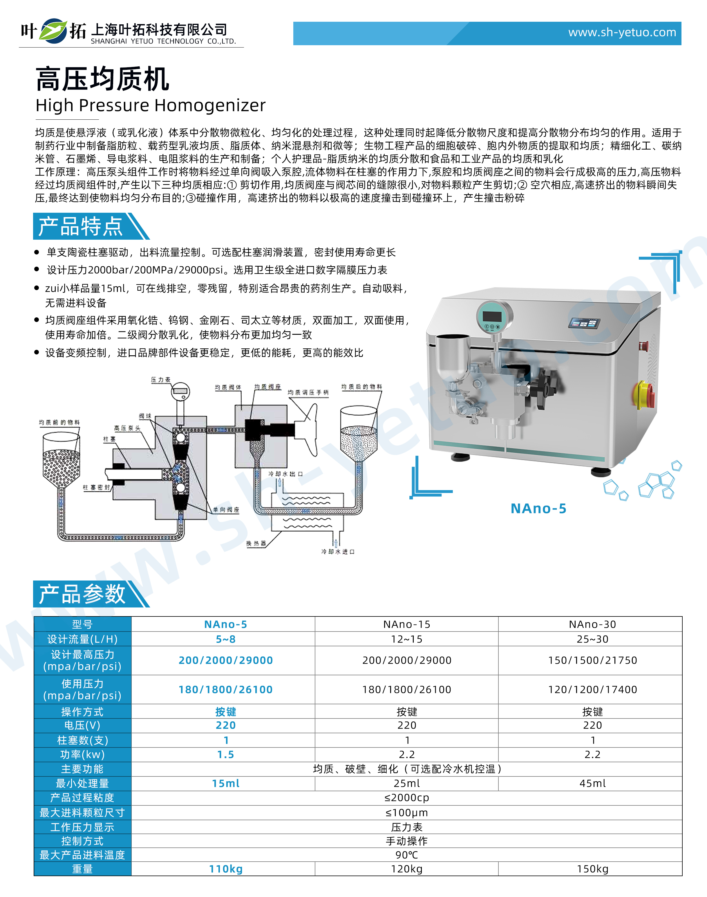 Features of Yetuo NAno-5 high-pressure homogenizer products
