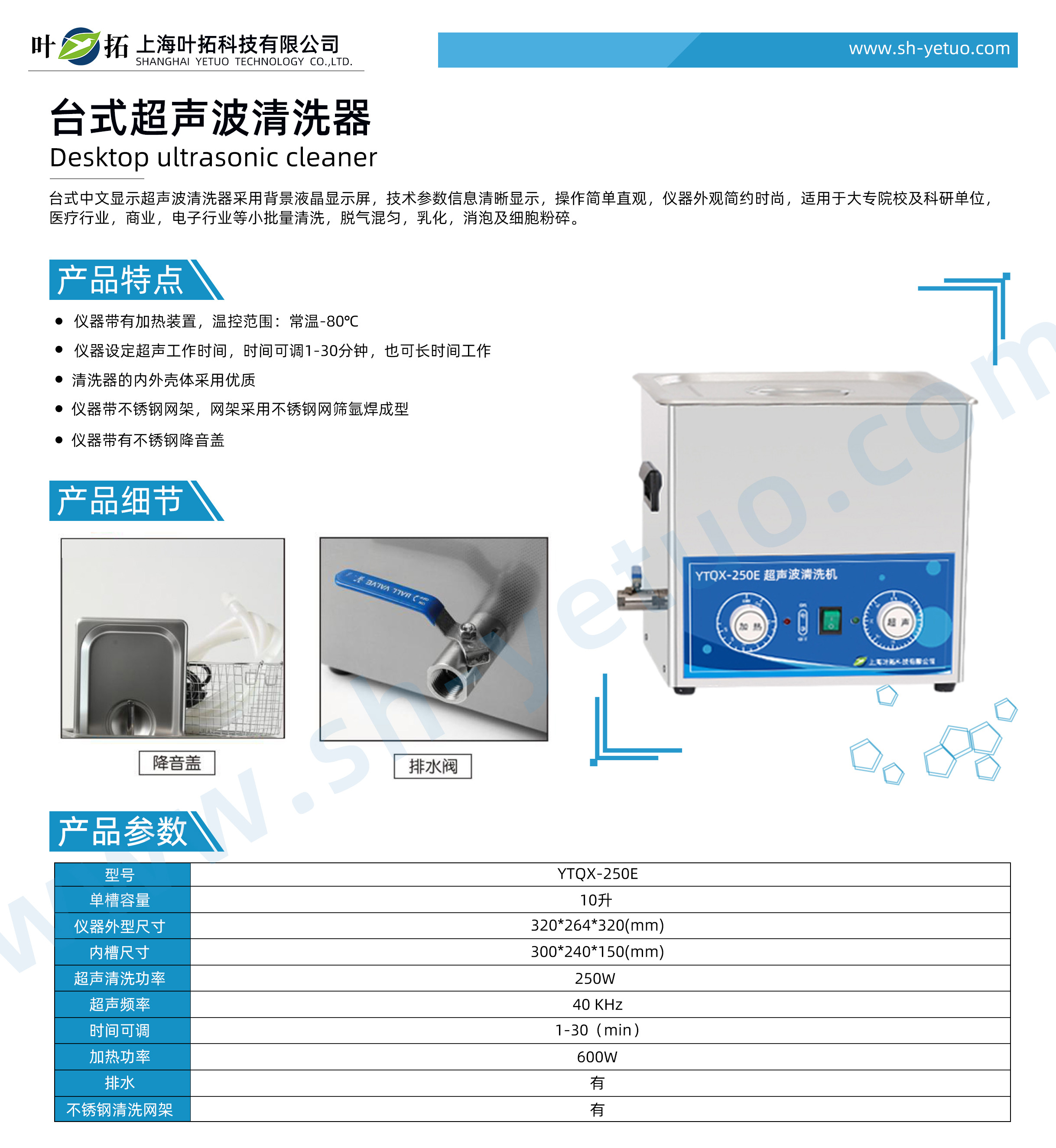 葉拓 YTQX-250E 臺式超聲波清洗機詳細參數(shù)