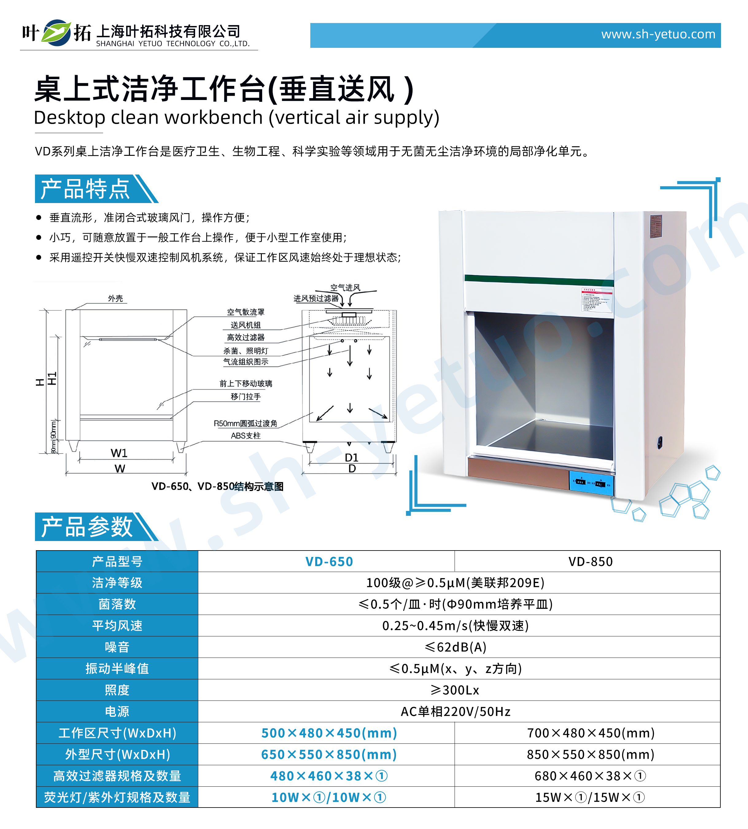 葉拓 VD-650 桌上式垂直送風潔凈工作臺產(chǎn)品特點