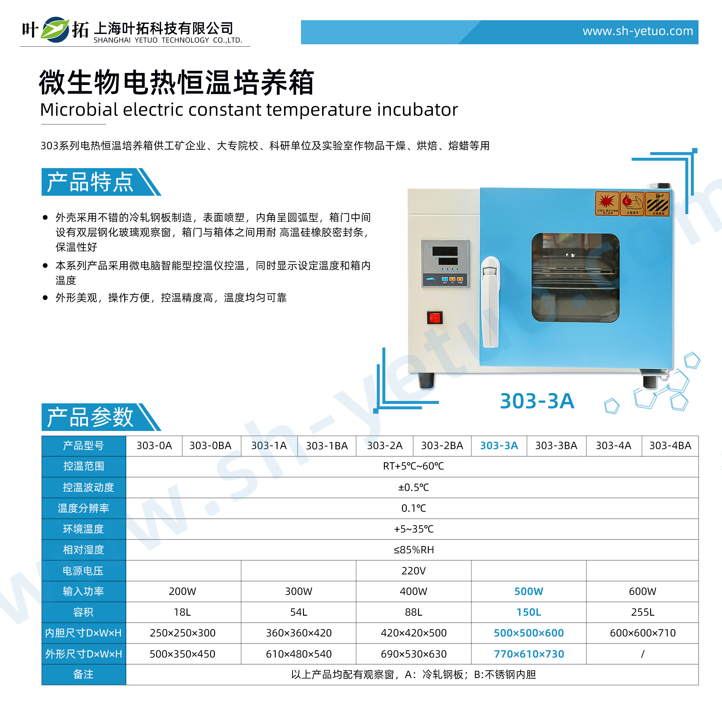 葉拓 303-3A 微生物培養(yǎng)箱詳細參數(shù)
