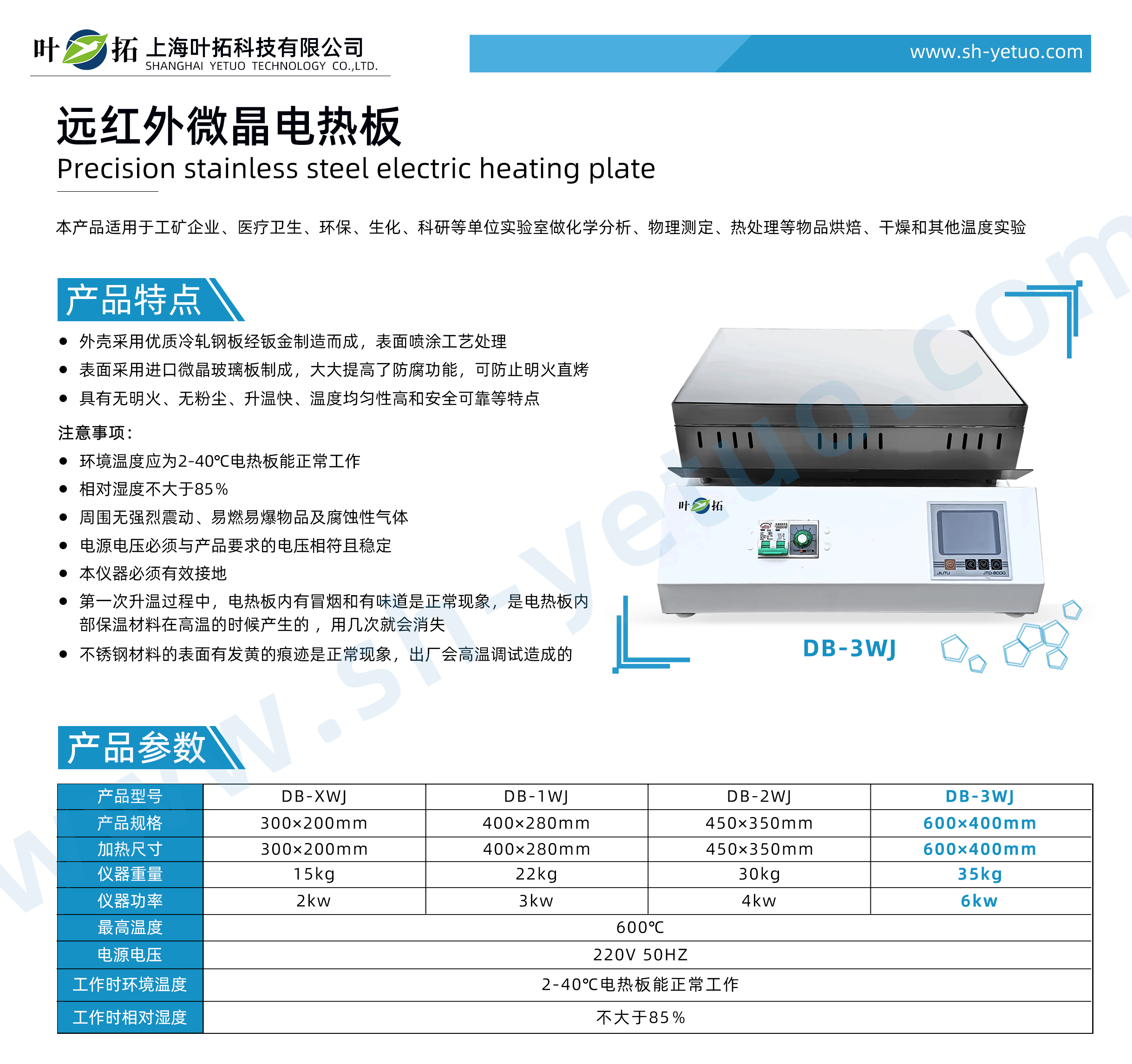 葉拓 DB-3WJ 遠(yuǎn)紅外微晶電熱板詳細(xì)參數(shù)