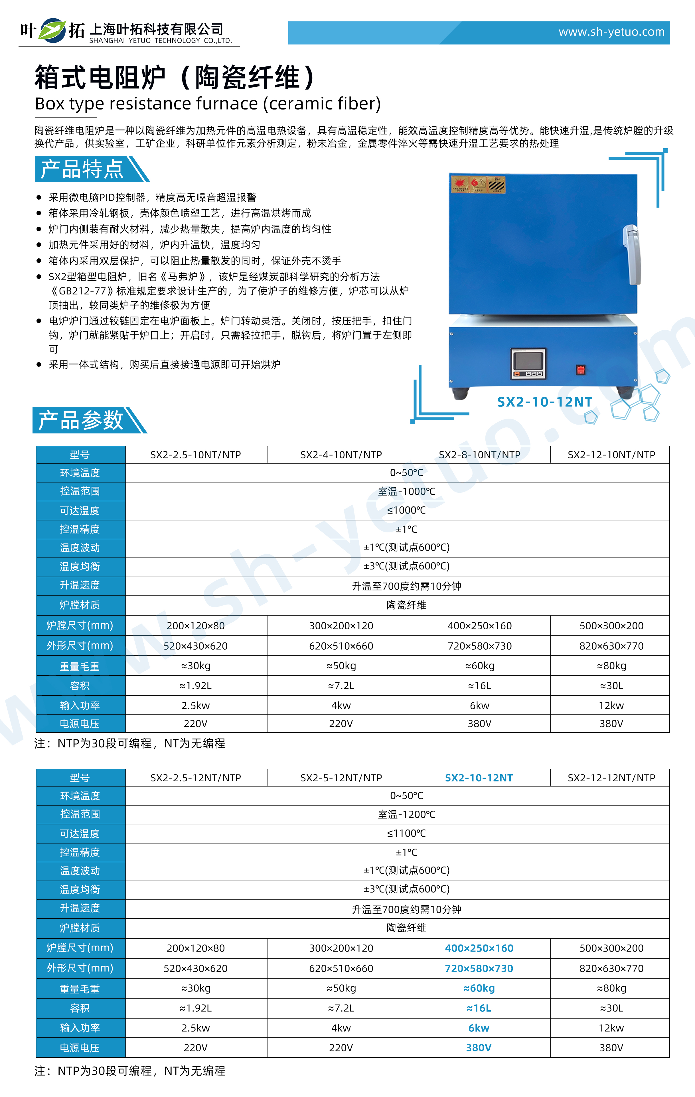 葉拓 SX2-10-12NT 陶瓷纖維箱式電阻爐詳細(xì)參數(shù)