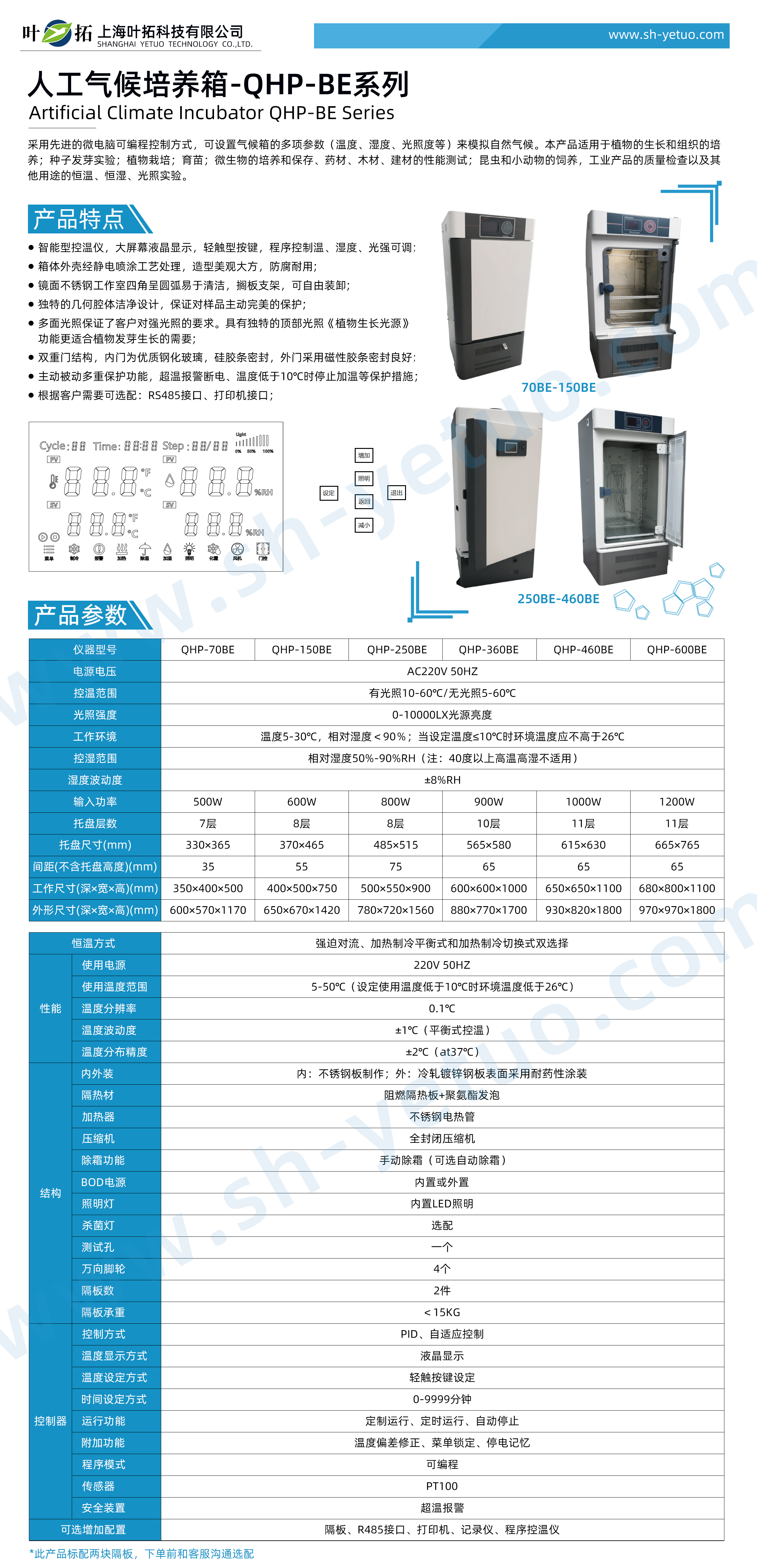 葉拓 QHP-460BE 人工氣候培養(yǎng)箱詳細(xì)參數(shù)